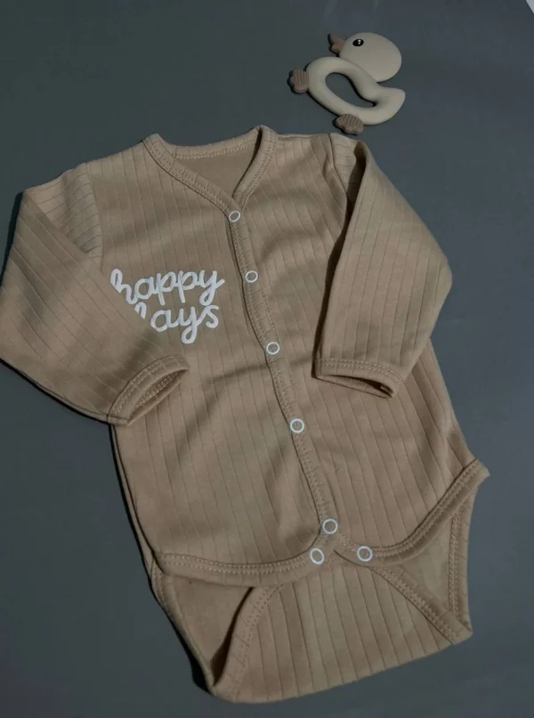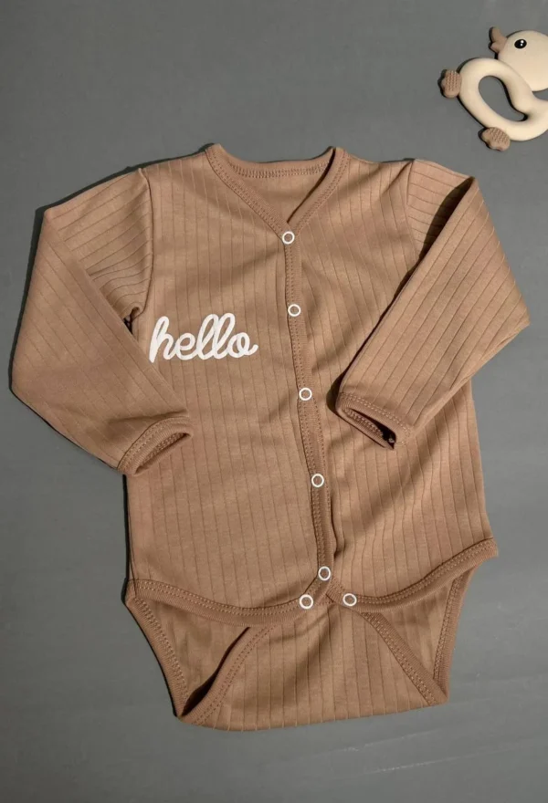 A practical bodysuit for babies who are already actively moving and exploring the world. The model is made of high-quality interlock, which holds its shape well, does not stretch and remains soft even after repeated washing. Thanks to the thoughtful cut, the bodysuit does not constrain movements and sits comfortably on the child throughout the day. Button fasteners ensure quick and convenient changing. An ideal option for everyday wear at home, on a walk or in combination with other wardrobe items.