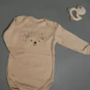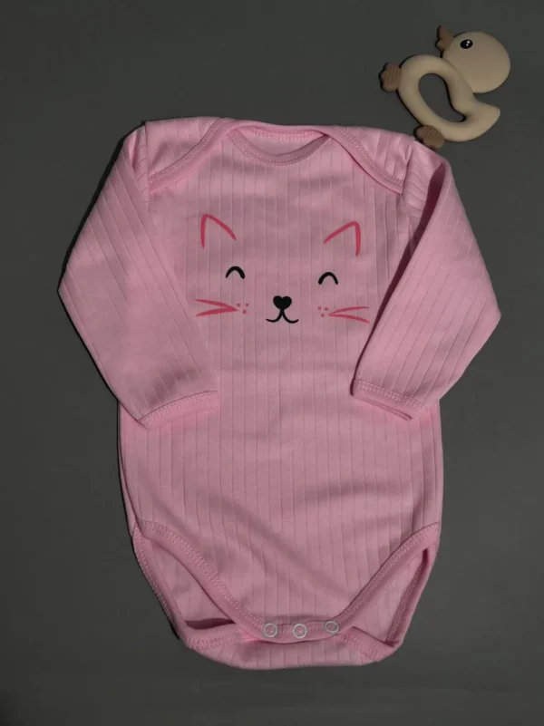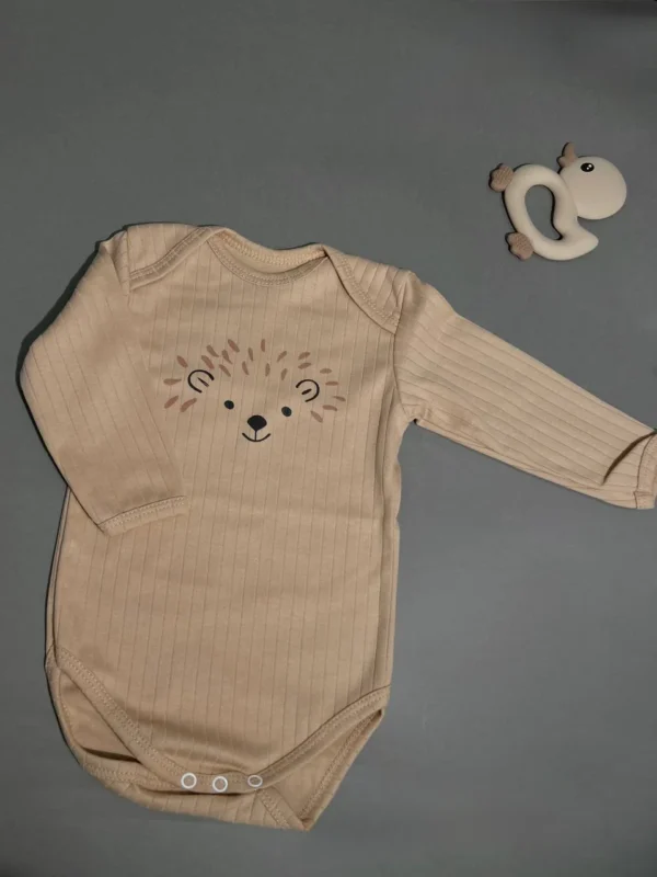 The bodysuit is made of soft cotton ribbed fabric, which stretches well and is pleasant to the body. Thanks to the elasticity of the material, the bodysuit fits comfortably and does not restrict the child's movements. The boat neck makes it easy to put on and take off the bodysuit without unnecessary discomfort. The laconic design is complemented by a cute print, which adds tenderness and makes the model universal for everyday wardrobe