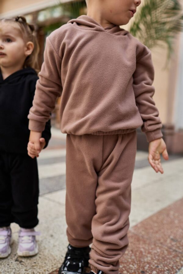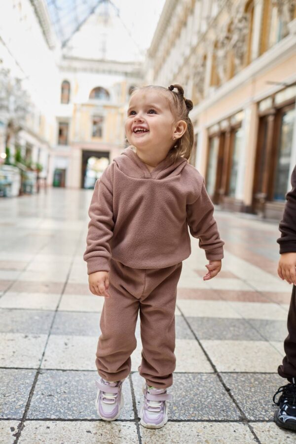 Sports fleece suit – the perfect choice for active kids. Made of soft and warm fleece (80% cotton, 10% elastane, 10% synthetic), it provides comfort and freedom of movement in any season. Natural cotton is gentle and safe for sensitive skin, elastane adds stretch, while a touch of synthetic makes the suit more durable and easy to care for. Suitable for both outdoor walks and playtime at home. Easy to wash, keeps its shape and color even after multiple washes. Available in sizes 74, 80, 86, 92, 98 – so your little one always feels cozy and stylish.