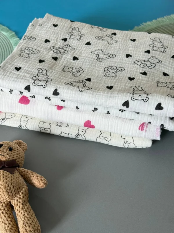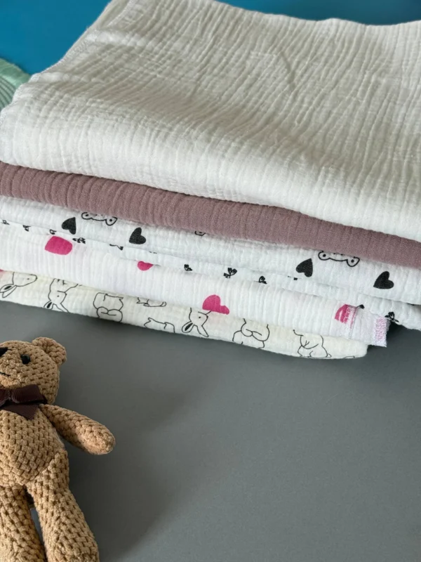 Muslin swaddle 110×90 cm is a versatile essential, perfect for daily baby care. Made of 100% natural fabric, it is exceptionally soft, lightweight, and breathable, ensuring no irritation and suitable even for the most sensitive skin. The hypoallergenic material dries quickly and retains its original look even after many washes. Practical and multifunctional, it can be used during feeding, bathing, as a light towel, or for everyday care. This combination of natural quality, convenience, and durability makes it the best choice for caring mothers.