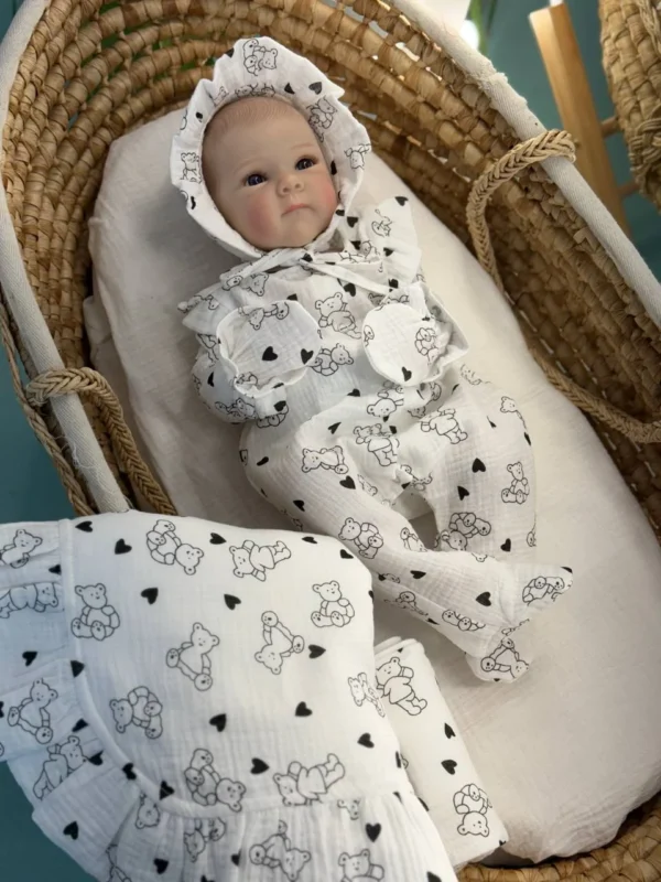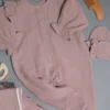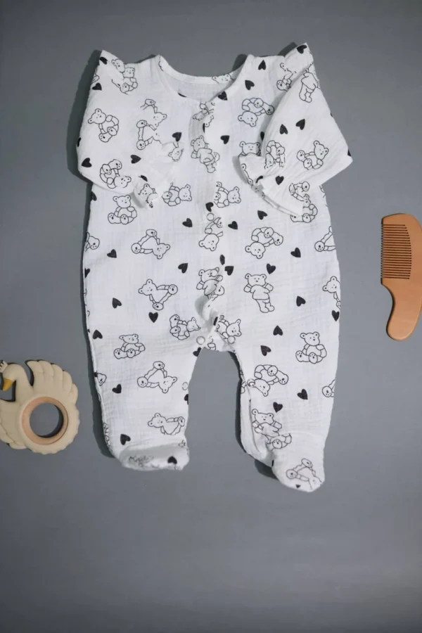 Muslin jumpsuit is designed for the comfort of the newborn from the first days. Natural cotton fabric is breathable, does not overheat and is suitable for sensitive skin.¶¶Convenient design with buttons allows you to quickly change the baby's clothes without unnecessary discomfort. Soft cuffs and a thoughtful cut provide a comfortable fit and freedom of movement.¶¶The set includes a hat and gloves, which makes the product a ready-made solution for the maternity hospital or the child's first wardrobe.