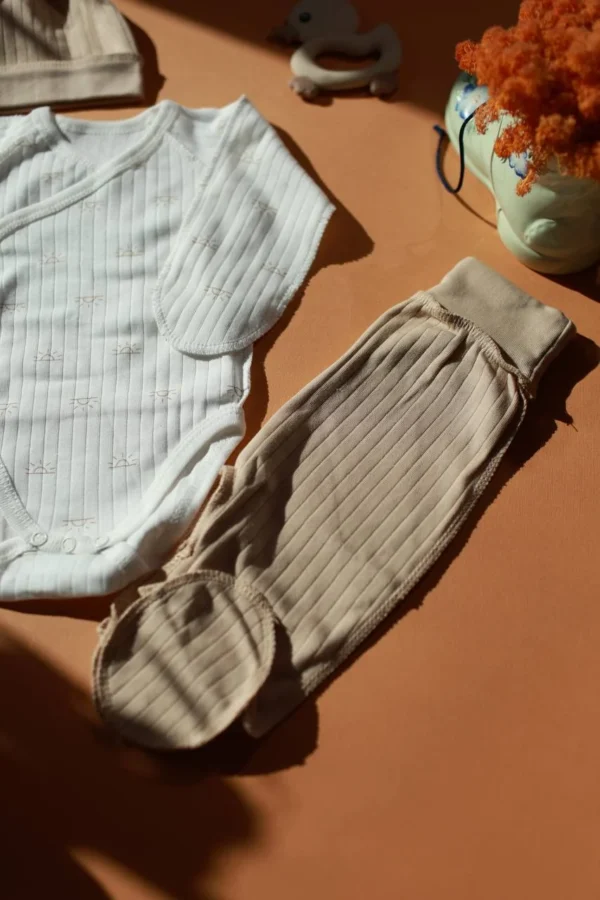 A gentle set for a newborn, created for the first days of life with maximum comfort and care. The set includes: • long-sleeved bodysuit • romper • hat Soft interlock delicately touches the baby's skin, is well ventilated and retains heat. The fabric is pleasant to the body and suitable for even the most sensitive skin. A convenient odor fastener allows you to quickly and easily change your baby's clothes without unnecessary discomfort. The romper has a comfortable fit, and the hat gently fixes and protects against the cold. The set is ideal for discharge, first walks or as a gift. These are the clothes that begin the baby's first warmth and peace.