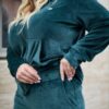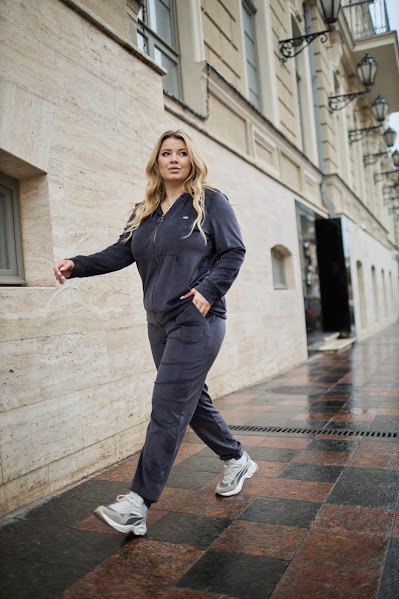 A velour tracksuit is the perfect blend of style and comfort. The soft, velvet-like fabric gently embraces the body, offering a pleasant tactile experience. The hoodie with a metal zipper features both functional and decorative pockets that highlight its modern design. The cuffed pants are complemented by convenient side pockets. An ideal choice for walks and leisure — comfortable, stylish, and always appropriate.