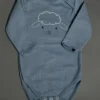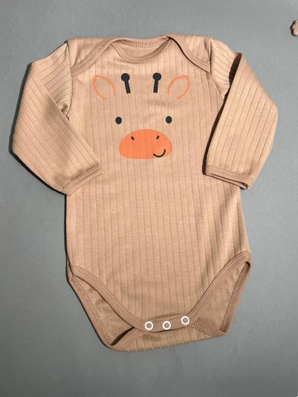 Боді виконаний з м’якої бавовняної тканини в рубчик, яка добре тягнеться та приємна до тіла.Завдяки еластичності матеріалу боді комфортно сідає та не обмежує рухи дитини. Горловина “лодочка” дозволяє легко одягати та знімати боді без зайвого дискомфорту.Лаконічний дизайн доповнений милим принтом, який додає ніжності та робить модель універсальною для щоденного гардеробу.
