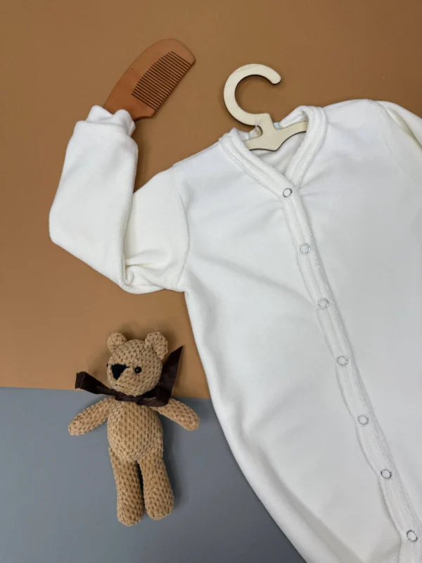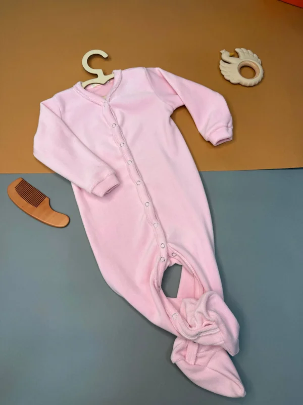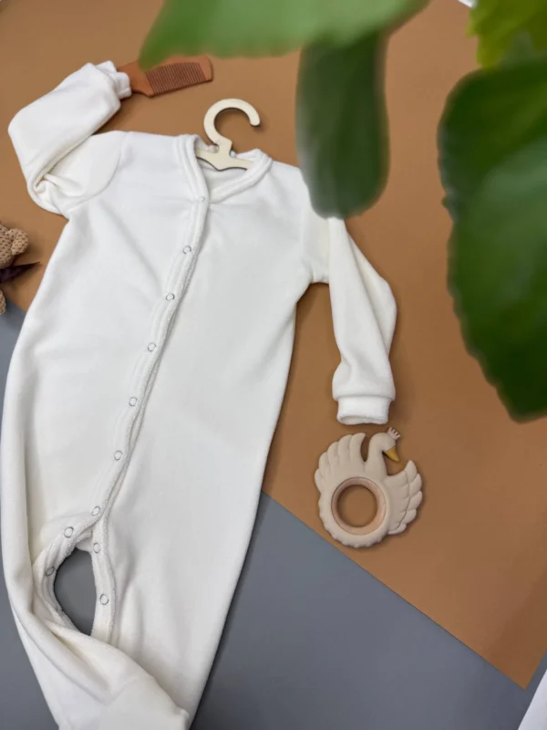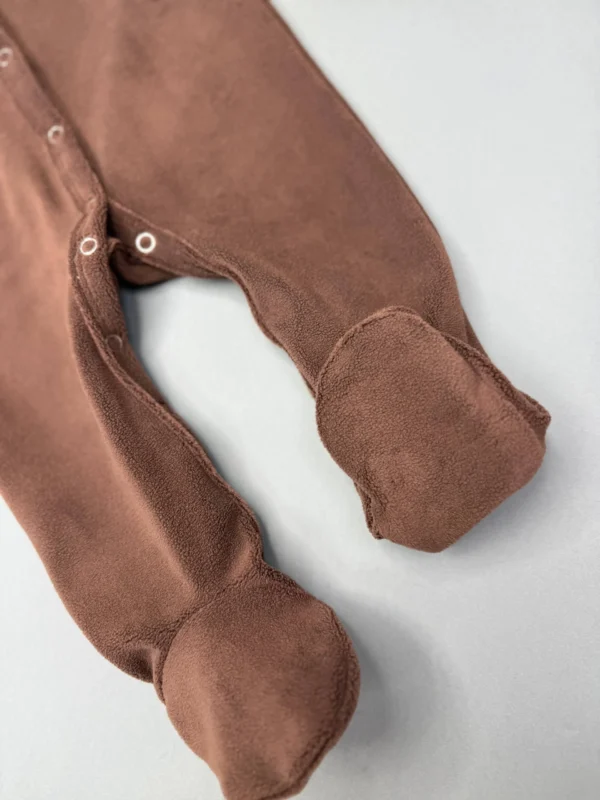 Дитячий костюм-сліп із плюшу – це теплий, м'який комбінезон із закритими ніжками виготовлений з приємного на дотик плюшевого матеріалу (велсофту) для максимального комфорту та тепла дитини. Такі сліпи ідеально підходять для новонароджених та малюків до 2-х років, забезпечуючи тепло, свободу рухів та захищаючи спинку та животик від холоду під час сну чи неспання.