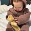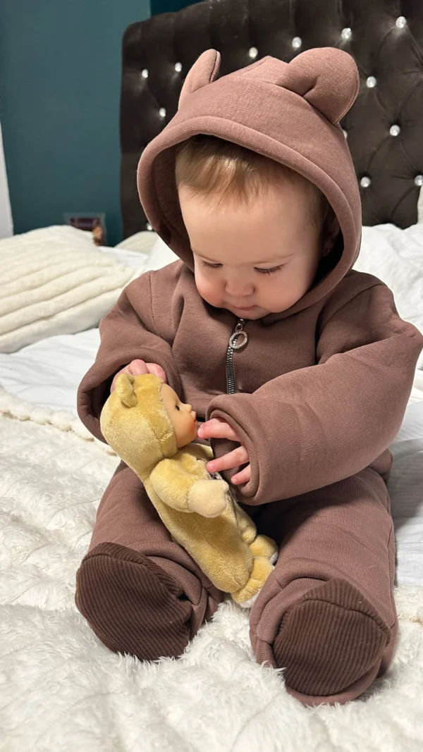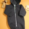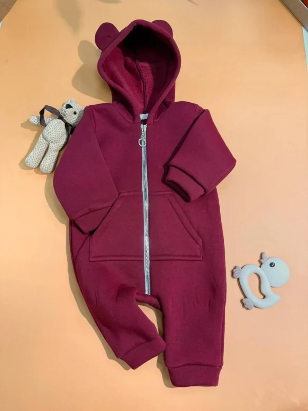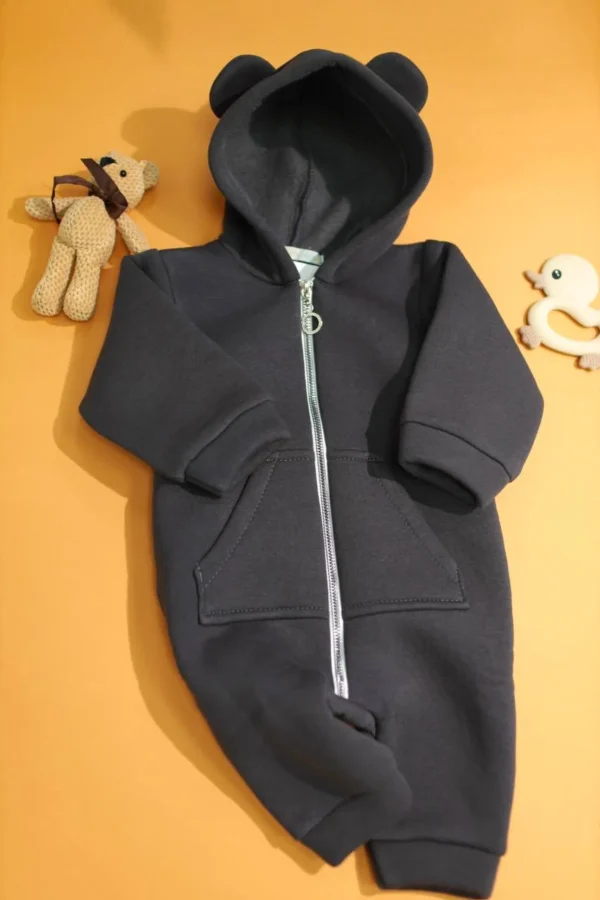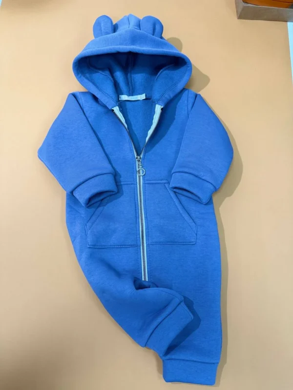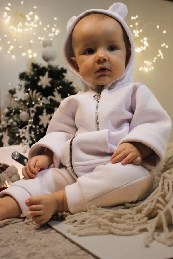 Дитячий комбінезон із тринитки - це теплий, щільний і м'який предмет одягу, зазвичай для прохолодної осені або зими, виготовлений із трикотажного полотна з петлею або начісом з виворітного боку. Він комфортний, гіпоалергенний і дозволяє шкірі дихати завдяки високому вмісту бавовни у складі, який часто доповнюється поліестером або еластаном для міцності та еластичності.