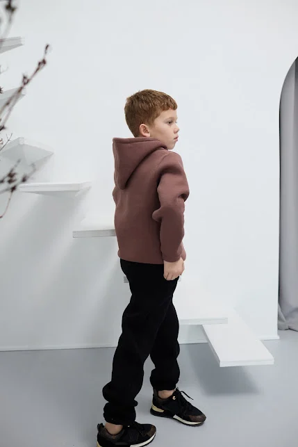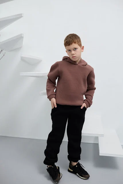 Спортивний костюм із тринитки виготовляється зі щільного трикотажного полотна (футер), яке ідеально підходить для дитячого одягу завдяки своїй м'якості, повітропроникності та довговічності.
