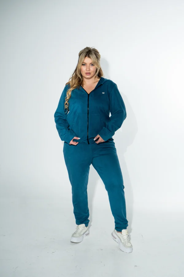 Прогулянковий костюм із кофти з капюшоном і звужених штанів — стильне та практичне рішення для повсякденного образу. Особливу увагу привертає оригінальний діагональний візерунок на вельветовій тканині, який робить комплект незвичним і таким, що запам’ятовується. Кофта з капюшоном і блискавкою забезпечує комфорт і захист від вітру, ідеально підходить для прогулянок і легких тренувань. Звужені штани з кишенями підкреслюють силует і створюють охайний вигляд. У такому костюмі легко виглядати ошатно навіть у будній день.