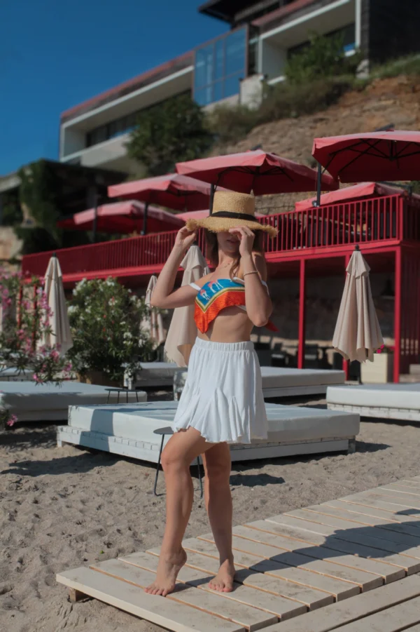 Міні-спідниця-шорти з жатки — твій must have для активного та стильного літа! Білосніжна, легка, з комфортною резинкою на талії, вона ідеально сідає на витончену фігуру. Завдяки клинам створюється ефект розкльошеної спідниці, а всередині ховаються зручні шорти — можна не хвилюватися за комфорт у русі. Чудовий варіант і для спортивного look, і для морської прогулянки. Поєднуй з кроп-топами, футболками, худі або спортивним бра — і ти готова підкорювати вулиці та пляжі. Універсальний вибір для тих, хто цінує свободу, стиль і зручність в одному образі.