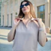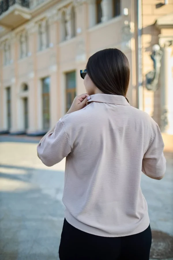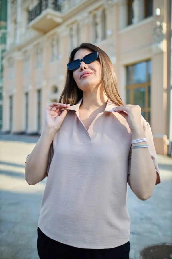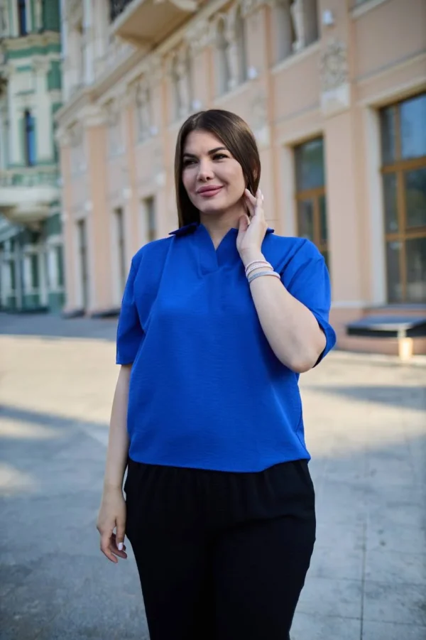 Літня блуза з американського крепу — чудовий вибір для тих, хто цінує стиль і комфорт. Акуратний V-подібний виріз із планкою витончено підкреслює лінію шиї, додаючи образу жіночності. Комір у сорочковому стилі надає класичних нот, а вільний крій забезпечує легкість і свободу рухів у спекотні дні. Модель ідеально поєднується з спідницями та штанами, пасує як для офісу, так і для прогулянок. Відмінне поєднання доступної ціни та високої якості робить цю блузу справжньою знахідкою для літнього гардероба.