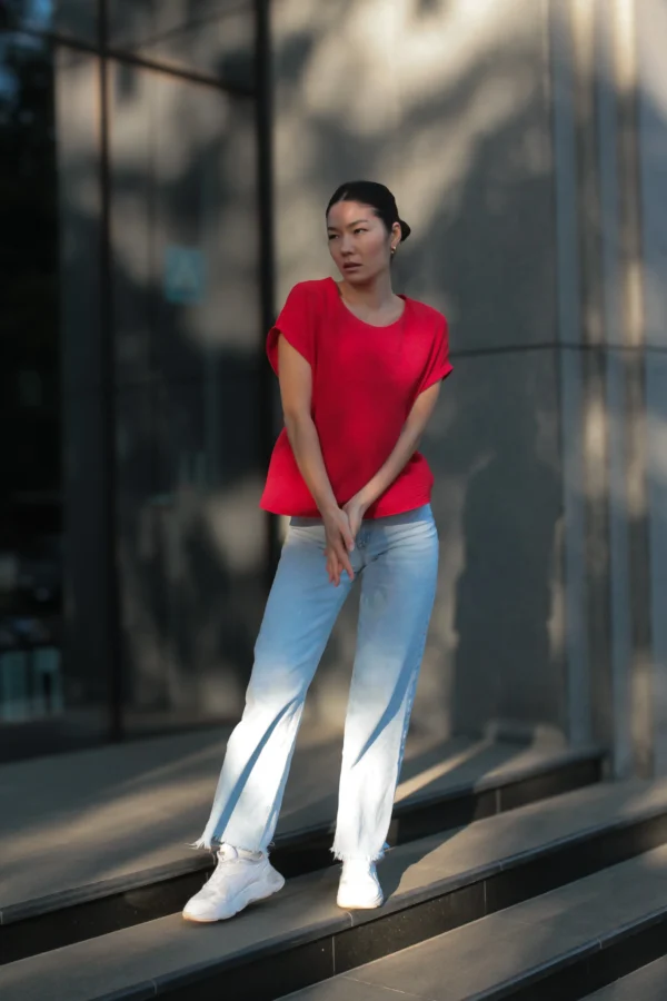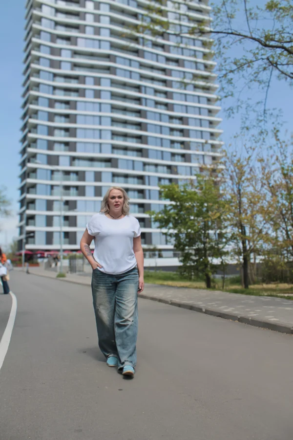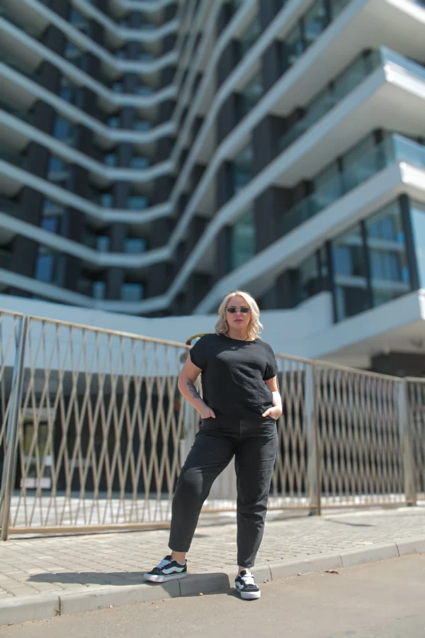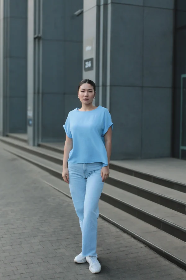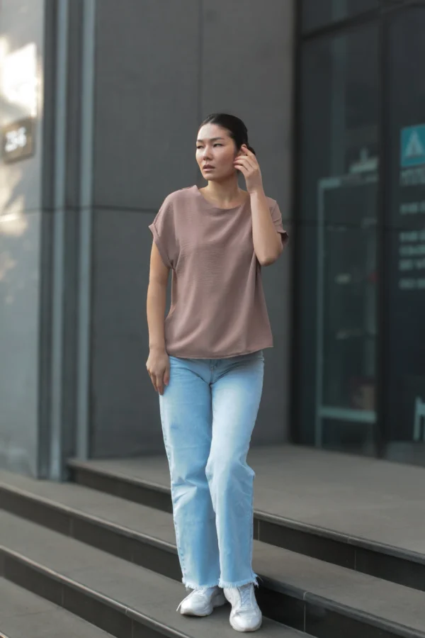 Легка базова футболка з американського крепу — втілення комфорту та стилю. Ніжний круглий виріз підкреслює лінію шиї, а спущені рукави з елегантними манжетами-відворотами додають шарму. Вільний крій красиво лягає по фігурі, приховуючи зайве та підкреслюючи жіночність. Ідеальна для офісу, прогулянок, зустрічей із подругами. Поєднуй з спідницями, штанами або джинсами. Модні відтінки, плюс-сайз розміри, якісний крій — усе, що потрібно сучасній дівчині.