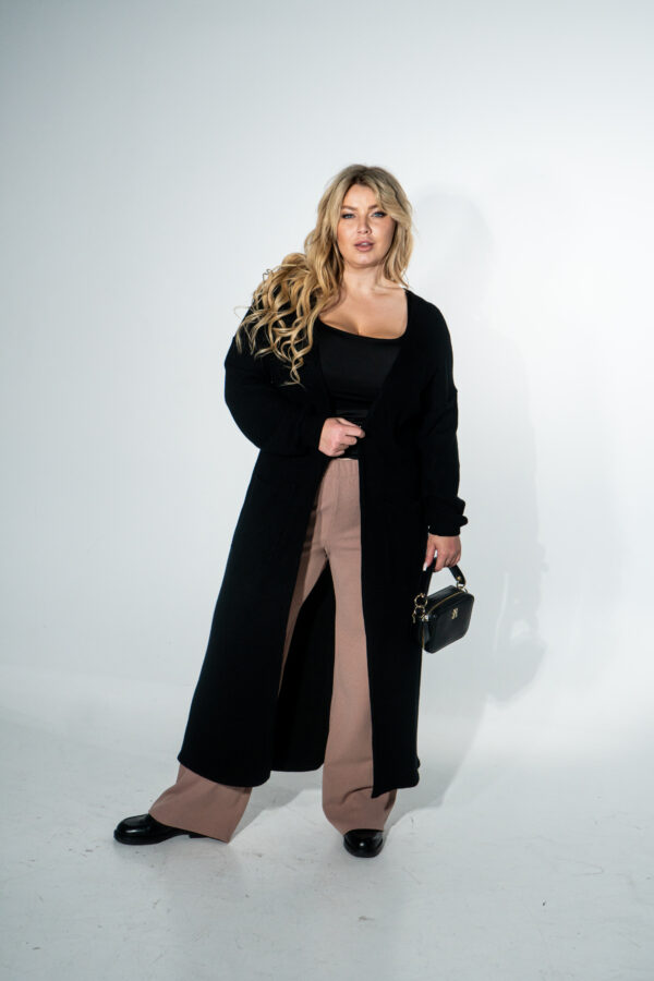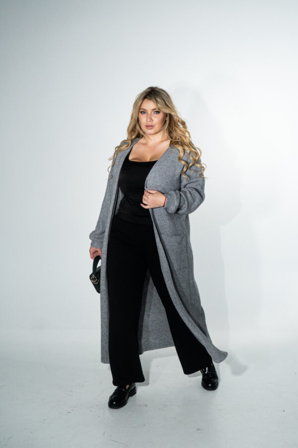 Довгий в’язаний кардиган з кишенями — універсальна річ, що поєднує комфорт, стиль і практичність. Виконаний у класичних кольорах, легко впишеться в будь-який гардероб. Без застібок — ідеально підходить для розслабленого, вільного силуету. М’який і затишний, чудово пасує для прохолодної погоди: восени, навесні або в прохолодне літо. Кишені додають зручності й невимушеності. Прекрасно поєднується з джинсами, штанами, сукнями чи спідницями. Підходить для щоденного носіння, офісу, прогулянок і поїздок.