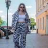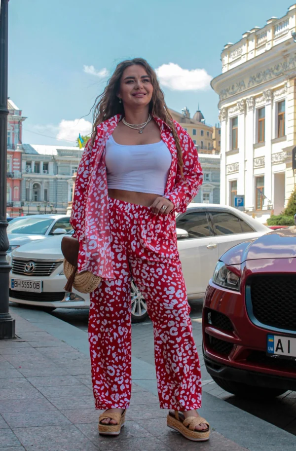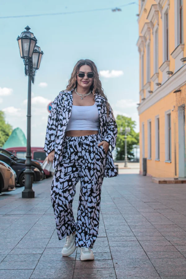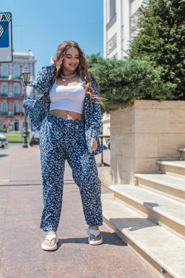 Літній прогулянковий костюм для красунь із пишними формами — це ідеальний баланс комфорту та яскравості. Надлегкий софт із сміливим, життєрадісним принтом підкреслить вашу індивідуальність і природну чарівність. Вільна сорочка на ґудзиках і прямі штани створюють розслаблений, але водночас стильний образ, який легко носити щодня. Цей комплект — справжня знахідка для жінок plus size, які цінують комфорт без обмежень і люблять бути в центрі уваги. Насолоджуйтеся літом з легкістю та впевненістю!