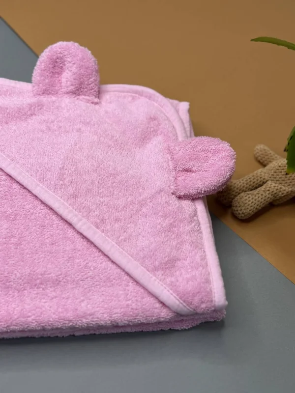 Розовый махровый полотенце 80×80 с капюшоном и ушками создано для комфортного купания новорождённого. Натуральная махра (100% хлопок) отлично впитывает влагу, быстро сохнет и не раздражает нежную кожу. Акуратная окантовка обеспечивает долговечность изделия. Капюшон сохраняет тепло после ванночки, а мягкая и компактная ткань делает полотенце особенно удобным для мам при ежедневном уходе за малышом.