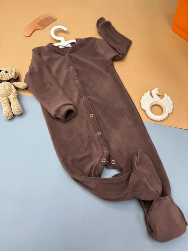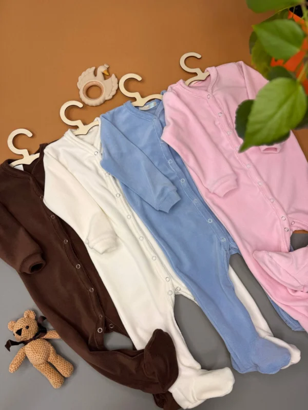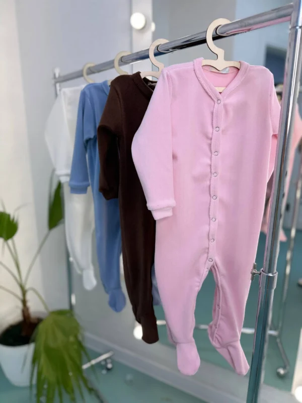 Детский костюм-слип из плюша – это теплый, мягкий комбинезон с закрытыми ножками изготовленный из приятного на ощупь плюшевого материала (велсофта) для максимального комфорта и тепла ребенка. Такие слипы идеально подходят для новорожденных и малышей до 2-х лет, обеспечивая тепло, свободу движений и защищая спинку и животик от холода во время сна или бодрствования.