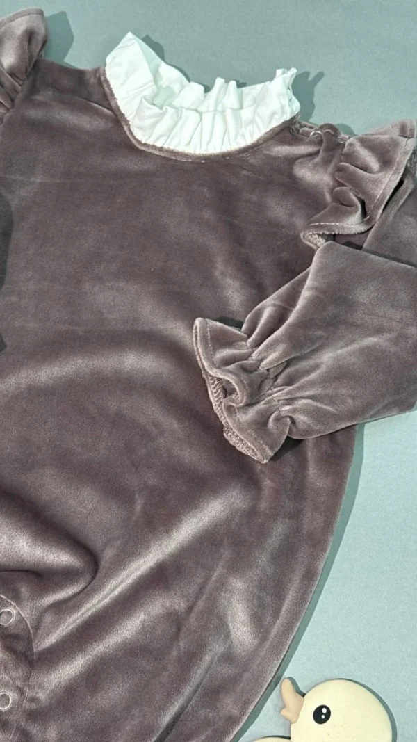 Велюровый комбинезон с рюшами, очень хорошая модель для маленьких детей, с велюровым комбинезоном в розницу 62.