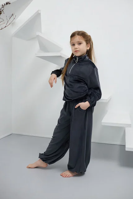 Детский велюровый спортивный костюм — это мягкий, удобный и стильный комплект для прогулок, школы или дома. Обычно включает кофту на молнии с капюшоном и штаны с манжетами. Велюр хорошо сохраняет тепло, приятен к телу, не теряет форму при правильном уходе.
