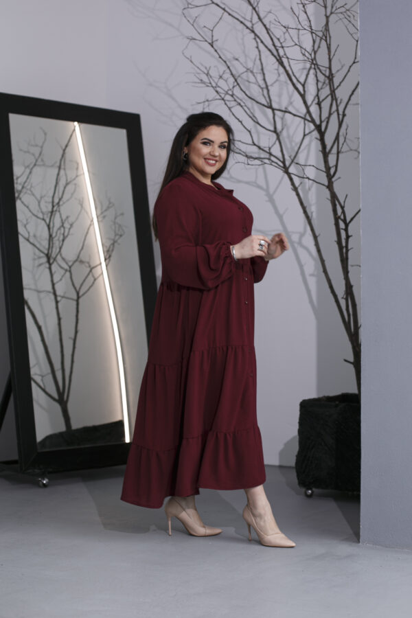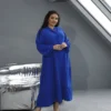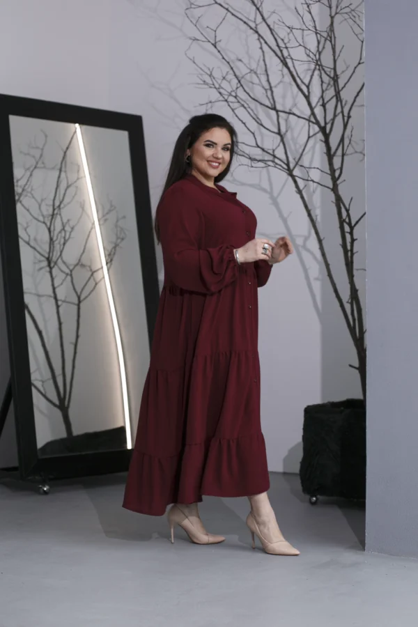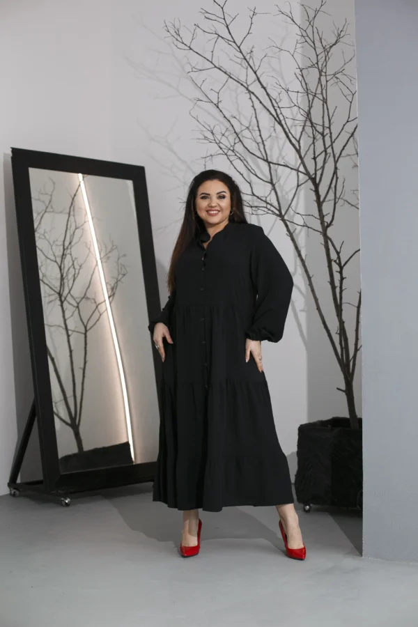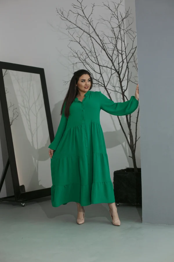 Элегантное макси-платье из американского крепа — безупречный выбор для жаркого лета. Модель с длинными эффектными рукавами, воротником-стойкой и аккуратной планкой на пуговицах подчеркивает утонченность образа. Изящная линия декольте добавляет женственности. Универсальный фасон сочетается с любой обувью — от сандалий до каблуков. Трендовые летние оттенки и великолепное качество от отечественного производителя делают платье идеальным для стильных женщин.