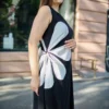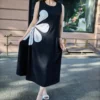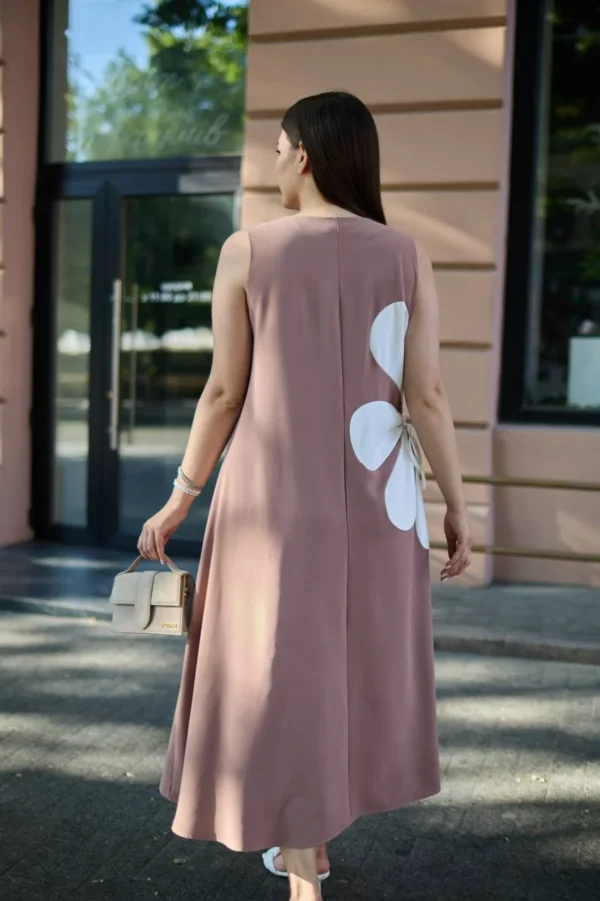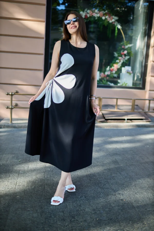 Эффектный летний сарафан макси длины — идеальный вариант для торжественных случаев. А-силуэт выгодно подчеркивает фигуру, а горловина в форме лодочки добавляет образу элегантности. Особое внимание привлекает контрастный цветок сбоку — яркий акцент и главная изюминка модели. Благодаря удобной затяжке форму цветка можно регулировать. Сарафан создан для женщин plus size: модно, стильно и доступно!